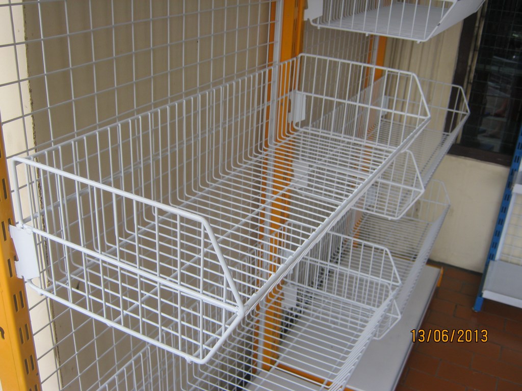 Keranjang besi terbuka membuat produk terlihat jelas dari berbagai sudut pandang, sehingga lebih menarik perhatian konsumen.